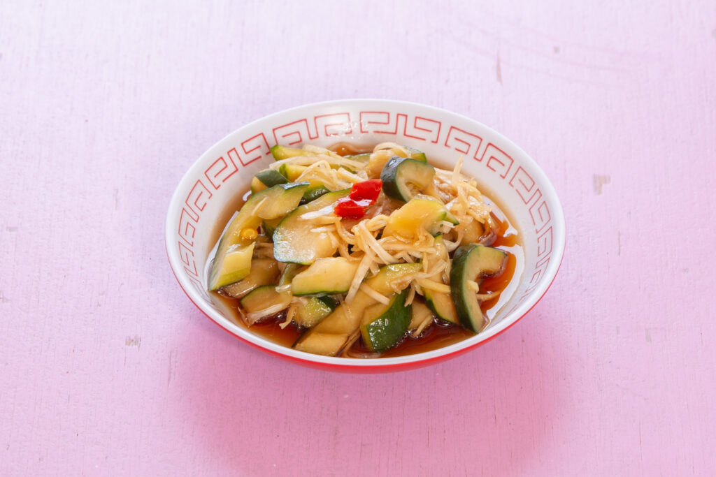 2025.09.29 おすすめのお料理紹介 vol.1 きゅうりの生姜ポン酢漬け針生姜と白髪ネギ、酸味と甘味のバランスを整えた自家製のポン酢に1時間漬けています。唐辛子も入れ、ピリッと辛い癖になる一品です。きゅうりは種を丁寧に取り除くひと手間で水くさくならずコリッと楽しい食感になっています。中華料理の前菜に。箸休めに。お試しください!